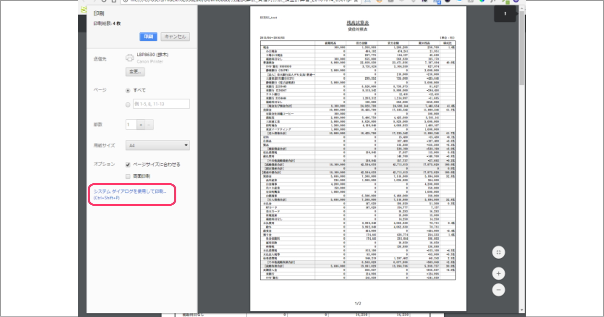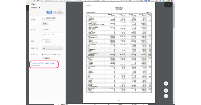 簡単なことでした、印刷画面の左下に「システムダイアログを使用して印刷…」をクリックすると