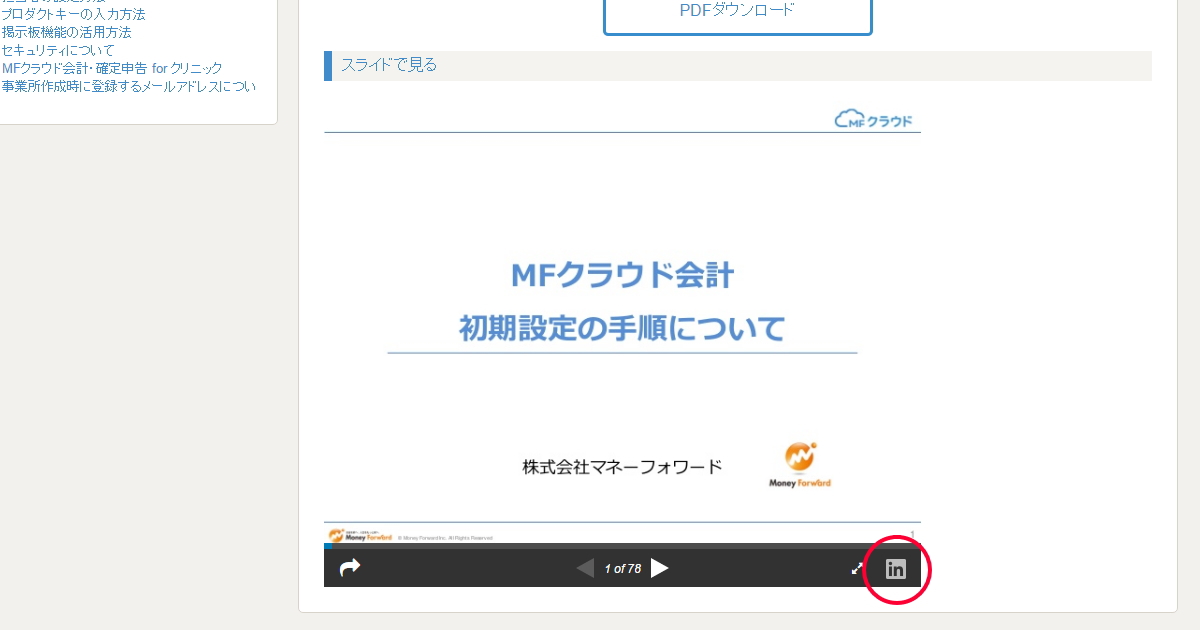 で、赤丸の「in」って何?と思いクリックすると、SlideShareってサイトが表示されました。