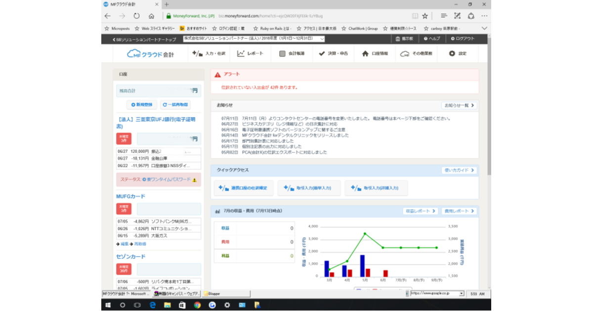 で、今回の目的は、せっかくWindows10にしたのですから、新しいブラウザMicrosoftEdgeでMFクラウド会計に入力してみたいと思います。