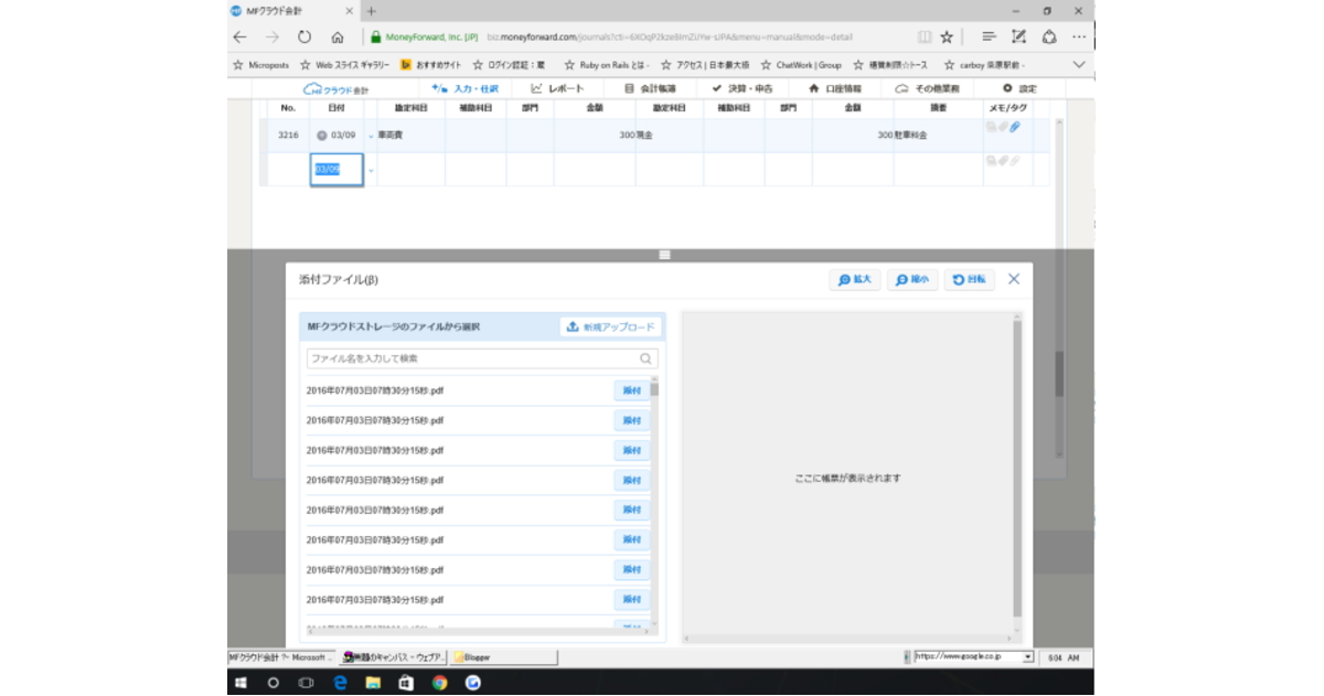 仕訳帳入力(β)も添付ファイルの表示が早いので、ストレスなくデータ入力もできそうです。